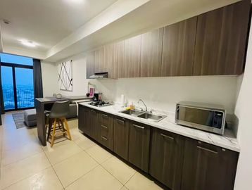 Cuenta con una recámara con cama King Size, sofá, área de trabajo, sala, cocina completa equipada, comedor y terraza privada.